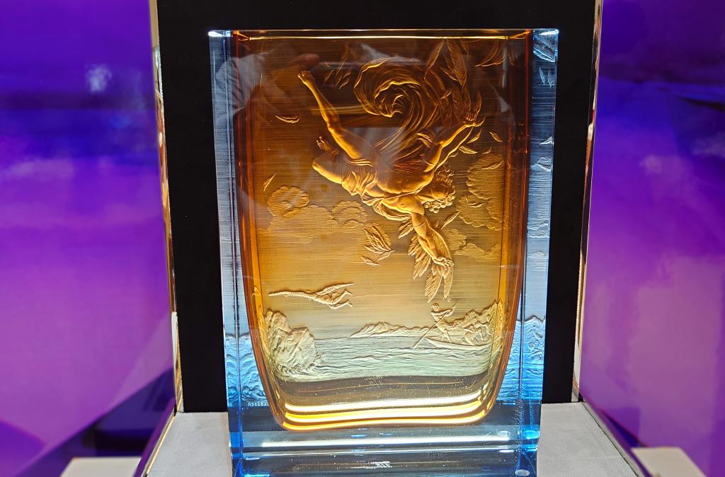 ▸酒神與穀神|以錯綜複雜的構圖和精湛的技藝刻畫出酒神與穀神所代表的富足及對生命之頌揚,標誌著他在水晶雕刻領域的新突破。