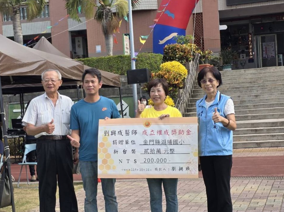特別值得一提的是,曾在2022年榮獲國際牙醫最高貢獻獎,臺大陽明牙科教授,10年來已捐贈給金門各校超過百萬獎助的牙醫劉興成醫師,在今年已是第2度捐贈20萬元「維成」獎助學金給湖埔國小,給予孩子多元學習、教師專業成長及各項教學設備,最令人感動。