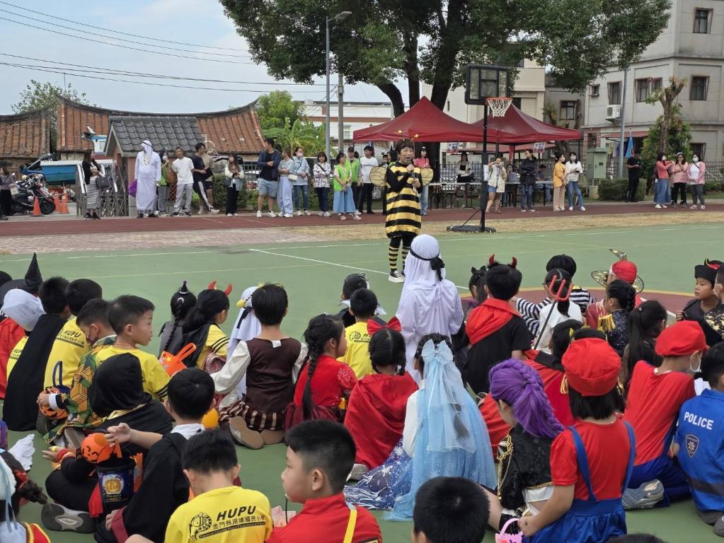【大成報記者陳金/金門報導】金門湖埔國小日前全校師生歡慶107週年師生與社區民眾盛裝參與、歡聲笑語不絕於耳;活動結合「教育、文化與社區共學」主題,展現湖埔百年學府朝氣與創新;該校校慶當日一早,國小部與附設幼兒園師生、家長們紛紛化身為萬聖節小怪獸、超級英雄、公主與王子,從校內出發前往湖下社區展開繽紛變裝大遊行;沿途高唱英文歌曲,造訪湖下車站、雙忠廟、社區服務處與村公所,家長們及社區居民熱情回應、主動設站讓孩子們糖果滿手、笑聲不斷,展現社區與學校共學共樂深厚情感。
