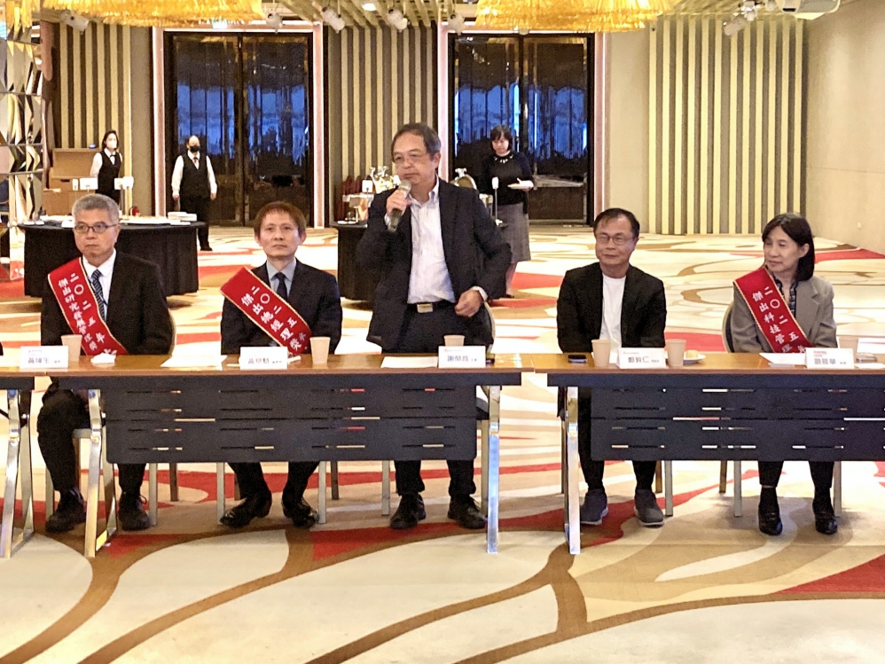 ▲新竹企經會傑出經理評選委員會主委謝榮哲(左3)致詞。