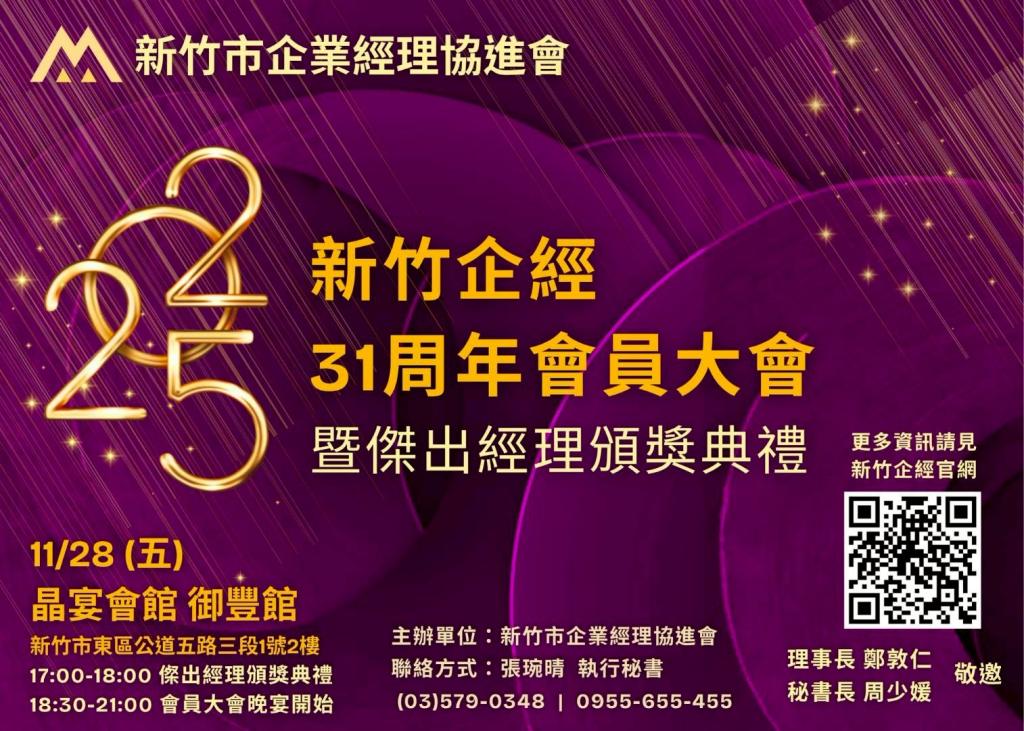 ▲新竹企經會將於11月28日舉辦31周年會員大會暨第22屆新竹區傑出經理頒獎典禮。(圖/新竹企經會提供)