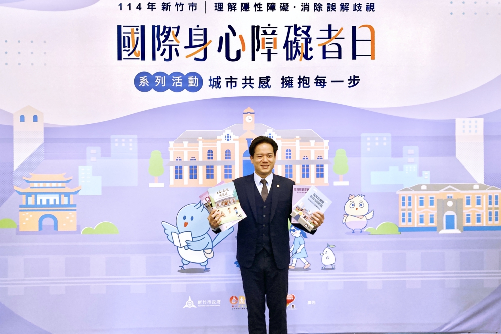 新竹市114年國際身心障礙者日系列活動,今(11/28)日在竹市府大廳舉辦系列活動開跑記者會,代理市長邱臣遠出席表示,今(2025)年以「城市共感.擁抱每一步」為主題,推出多項平權倡議與共融體驗活動,同時透過「我的出走日記」支持性論壇,帶領障礙者規劃新竹城市小旅行,並於記者會首播紀錄短片、發表4大主題易讀文件、辦理「城市共感.有你同行」身心障礙服務跨專業績優人員表揚大會,12月1日至12月7日於將軍村辦理「城市共感.藝起靠近」身心障礙者服務成果展及共融手作體驗活動,展現竹市府推動身障平權與友善政策的成果。