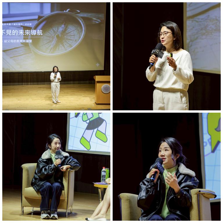 ▲IC之音於12月6號主辦的《IC國際教育展》在國立清華大學旺宏館舉行,AI教育專家胡筱薇知名藝人陶晶瑩於名人論壇分享育兒觀點AI時代教育與海外求學的真心話現場笑聲與掌聲不斷。(圖/IC之音提供)