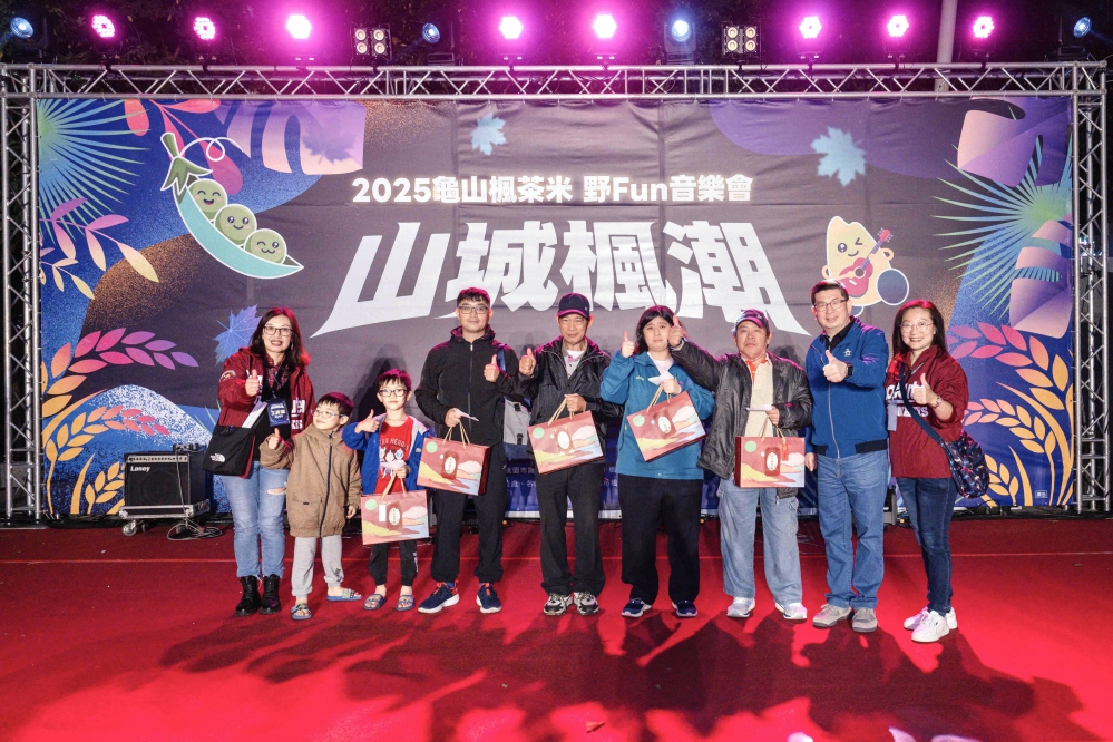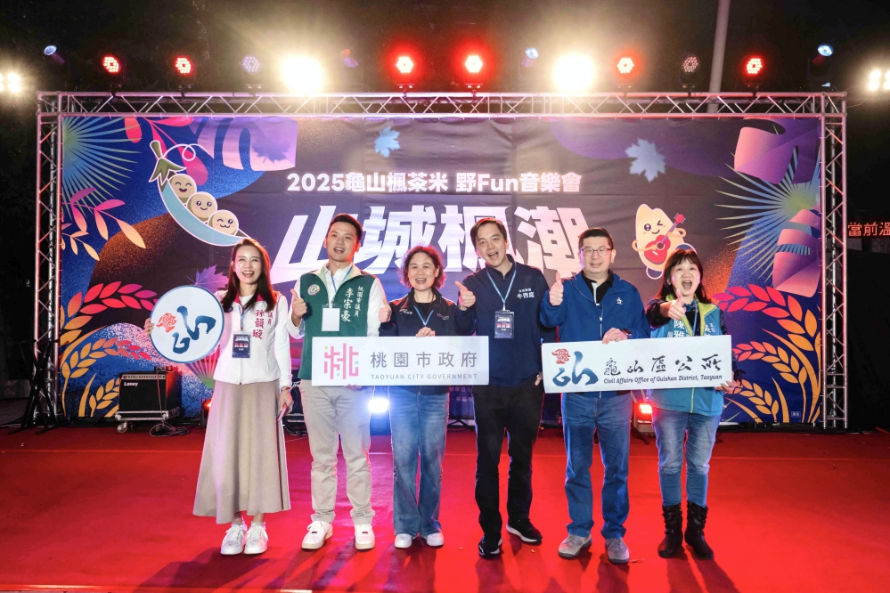 桃園市龜山區公所於12/6晚間在公所旁天幕廣場盛大舉辦「2025龜山楓茶米.野Fun音樂會」,這場音樂會活動以「山城楓潮」為主題,打造一場融合在地特色與流行文化的跨世代音樂會。現場人氣爆棚,吸引近千名市民朋友參加,桃園市政府副秘書長賴淑華更親臨現場,與民眾熱情互動、共襄盛舉,一同在歡笑與樂聲中度過溫暖熱鬧的夜晚。