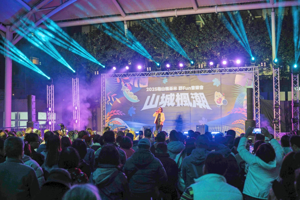 ▲融合在地特色與流行文化的跨世代音樂會-「2025龜山楓茶米.野Fun音樂會」,舞台上星光熠熠,卡司陣容主打「跨世代」金曲饗宴。(圖/桃園市龜山區公所提供)
