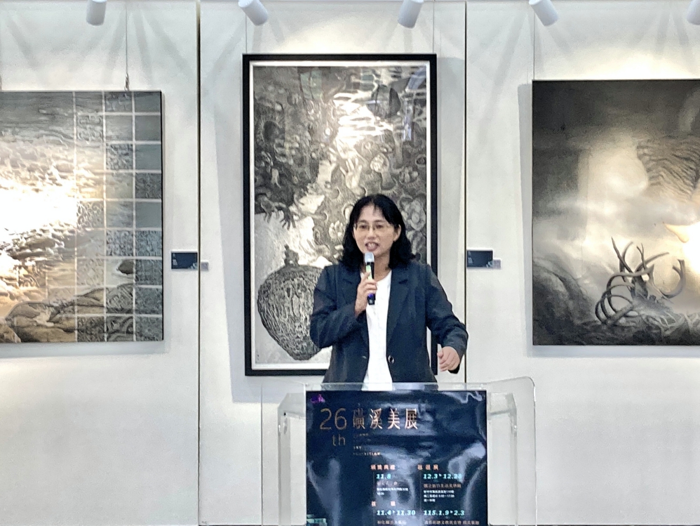 張雀芬局長致詞表示,磺溪美展自民國89年創辦以來,已邁入第26屆,是全國具代表性的縣市公辦美展之一。今年徵件踴躍、再創新高,共吸引1,375件作品參賽。經48位評審委員進行初審、複審與決審三階段評選後,最終選出包括磺溪獎、全興獎、磺溪新人獎及入選等共159件優秀作品,充分展現創作者在媒材語彙、技法突破與議題思考上的豐沛能量。