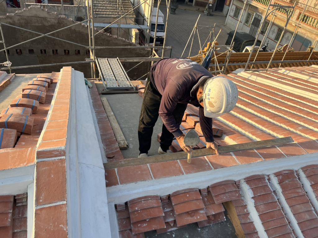 建設處說明,沙美老街建物因屬街屋類型,中脊型式為馬路脊,並非採用煙筒箍施作,故以中央瓦槽鋪設完成象徵其涵義。