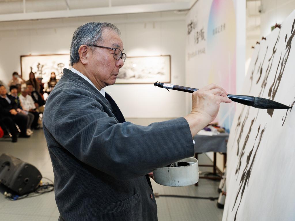 (大成報記者張玉玲/台北報導)張炳煌教授是台灣家喻戶曉的書法名家,今(27)日在新竹縣政府文化局美術館101展廳舉辦「承古開新、筆墨共融-書法暨e筆作品展」,開場由銅好樂團三重奏揭幕,而與張教授擁有多年深厚友誼的聲樂家簡文秀,特別專程趕赴新竹,高歌一曲〈又見炊煙〉結合張教授的書法揮毫,實為難得一見的跨域藝術聯動。