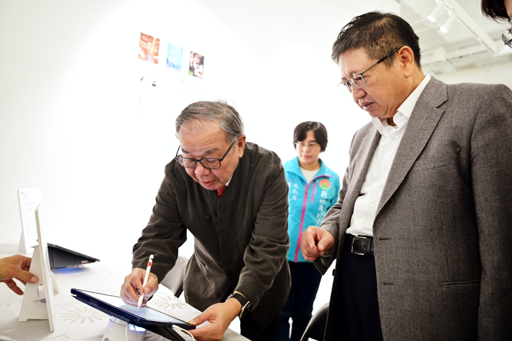 楊文科縣長致詞表示,張炳煌教授以深厚的功力與不懈的熱忱推動書法超過50年,民國69年主持三台聯播的「每日一字」長達20餘年,展現傳承古今、筆墨共融精神,並將書法帶入家家戶戶;張炳煌教授自2001年帶領團隊歷經7年研發出「e筆書畫系統」,並結合AI動畫,開啟書畫影音化的新紀元。