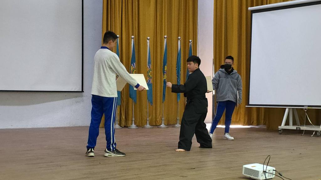 活動高潮之一,則由具備黑帶三段黃同學帶來精彩跆拳道表演,俐落動作與穩健氣勢,展現青年學子專注與自信,也讓長輩們留下深刻印象,現場掌聲不斷。
