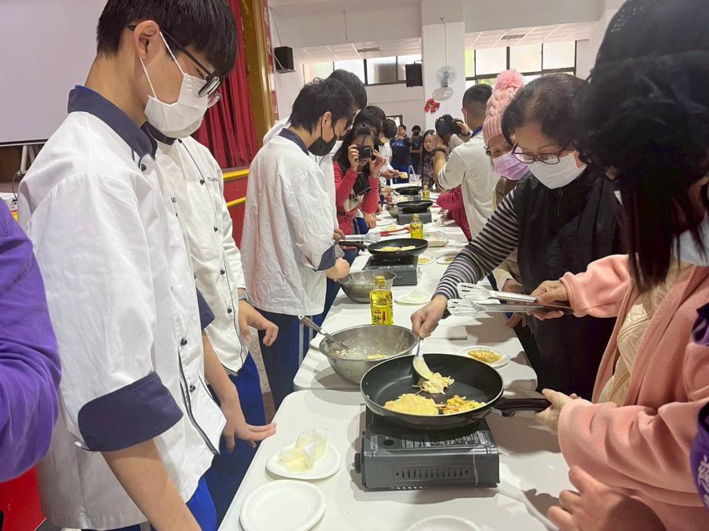 活動尾聲,同學們與長輩一同動手煎製蔬菜煎餅,在翻煎與分享過程中,彼此交流生活經驗,拉近世代距離;簡單料理與溫暖陪伴,讓活動在香氣與歡笑中畫下美好句點。