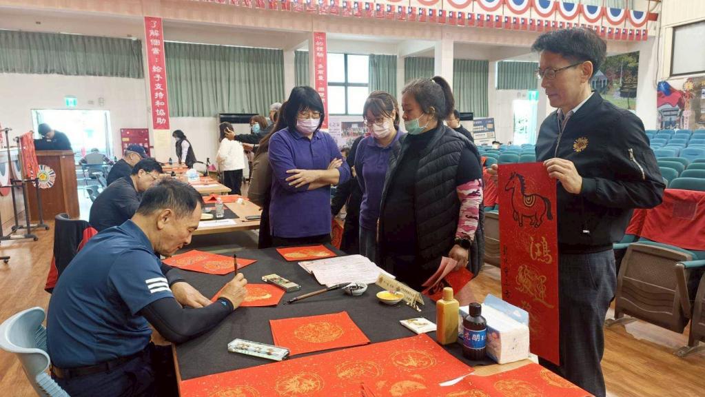 【大成報/彰化報導】春節將屆,中彰榮家為慶祝馬年新春於4日邀請多位具書法造詣住民長輩及社區書法老師,舉辦「新春揮毫贈春聯」活動;除營造除舊佈新、歡喜迎馬年喜氣外,也讓長輩們以揮毫寫春聯方式一展長才;現場索取春聯長輩更是絡繹不絕,伴隨著新春喜氣音樂,沉浸在過節喜悅氛圍當中,共同迎接健康、平安、歡樂「福馬年」。