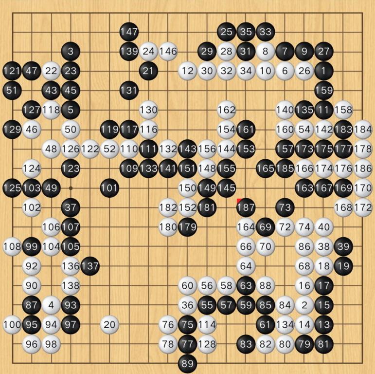 這盤棋勝負的天平已經明顯傾斜。經過中盤激烈的戰鬥和官子階段的定型,判斷白棋勝率降低。從棋盤上看,黑棋在中腹和左側構築的實地十分穩固,並且成功限制了白棋在下邊的擴張。雖然白棋在右上角和右側有不小的實空,但黑棋的整體效率更高。此時棋局已接近終點,3目的差距在頂級對局中很難被逆轉。(黑勝)