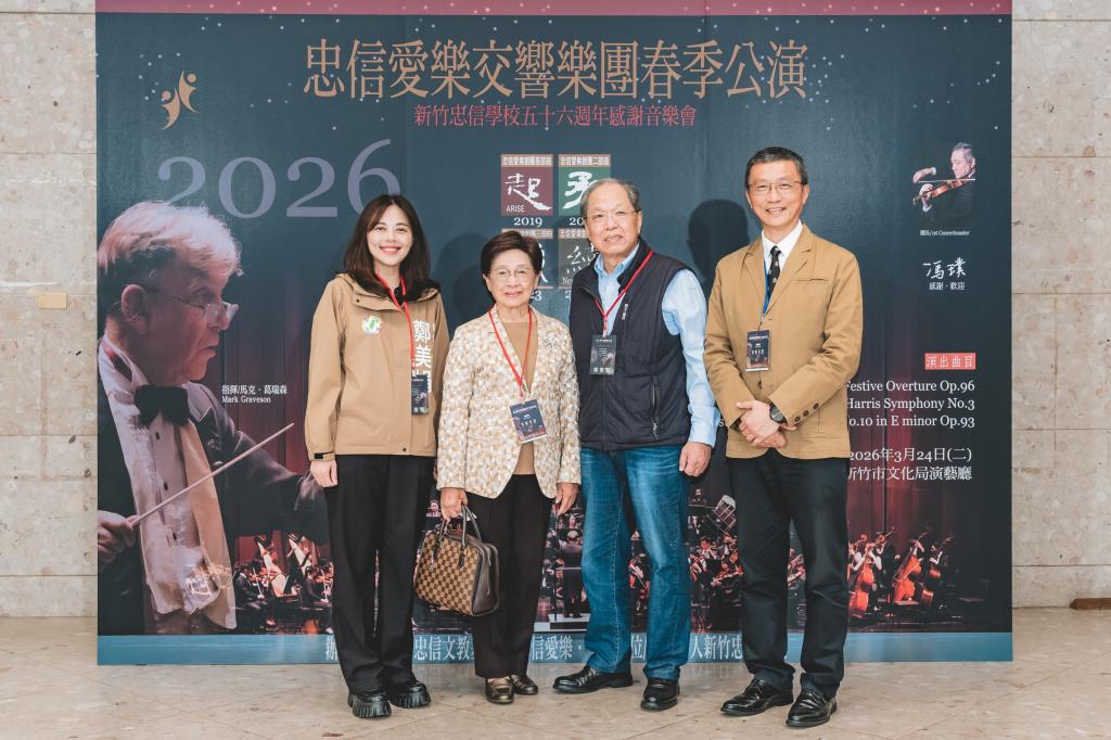 這場音樂會也是「忠信學校五十六週年感謝音樂會」,感謝過往所有曾經指導忠信學子的台灣音樂家及音樂教育工作者們,如,鄭保家老師、莊元老師、彭凱男老師、陳威帆老師、吳藶宸老師、李慧玫老師、于善敏老師、陳詩音老師、劉子嘉老師、魯圜圜老師、朱培暄老師、林婉雲老師、宋知庭老師等。因為有這些音樂工作者辛勤的耕耘,讓忠信學子的故事變得更加豐富而精采。忠信學校校長廖婉君作如上表示,並向他們表示最深的謝意。