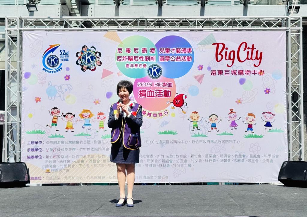 國際同濟會台灣總會竹苗區區主席廖龍珍表示,同濟會的成立宗旨為「照顧兒童.服務社區」,藉由公益活動,除號召民眾一同捐血做公益以外,也結合竹市府局處單位,共同辦理攤位闖關活動,增進兒少反毒、反霸凌等重要觀念。更透過舉辦兒童才藝比賽,宣導兒少發展適性揚才的重要性,也帶給親子同樂的難忘回憶。