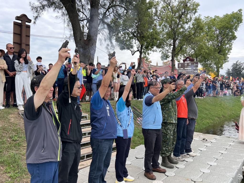 副縣長李文良與參與慶典貴賓共同主持鳴槍典禮後,龍舟賽程正式展開,金寧中小學寧鼓隊並為現場鄉親帶來鏗鏘有力、振奮人心「友善幸福城」鼓陣表演;行政院金馬聯合服務中心執行長吳增允、縣議員唐麗輝、金防部政戰主任王石朋少將、金門縣政府教育處長孫麗琪、環保局長李廣榮、警察局副局長汪大宇、金酒公司副總經理陳國庭、金城鎮長李誠智、金寧鄉長楊忠俊、金湖國小校長陳佩玉、水產試驗所所長李佳發、古寧村長李開陣、體育場場長王志仁、教育處體育保健科科長莊凱倫都到場觀禮。