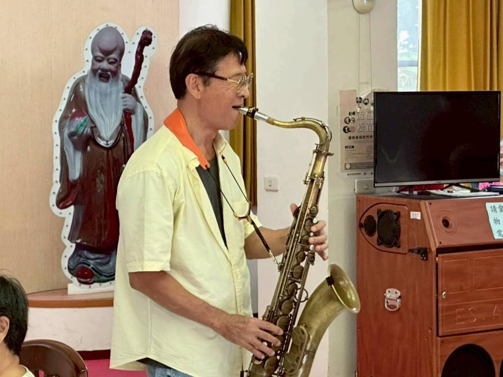 活動在榮家主任蘇再勝陪同揭開序幕,張將軍以悠揚低迴薩克斯風演奏鄧麗君多首膾炙人口經典老歌,如〈甜蜜蜜〉、〈夜來香〉、〈往事只能回味〉、〈愛情的恰恰〉、〈戀曲1990〉等熟悉旋律,帶領長輩穿越時光隧道,喚醒記憶深處美好時光,現場長輩不禁隨著音樂輕聲哼唱、舞蹈,掌聲不斷,沉浸在音樂懷舊氛圍中。