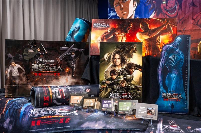 為了讓粉絲盡情享受活動,i-Ride飛行劇院特別準備了一系列精美周邊,只要購票或參與活動,即有機會獲得全球獨家角色壓克力色紙、壓克力拼圖、徽章及兵團證等限量贈品。此外,還有首次亮相的3D巨人周邊商品,包括超狂30公分超大型巨人尺、全系列滑鼠墊及海報掛畫,讓粉絲能將現場的感動與回憶帶回家!