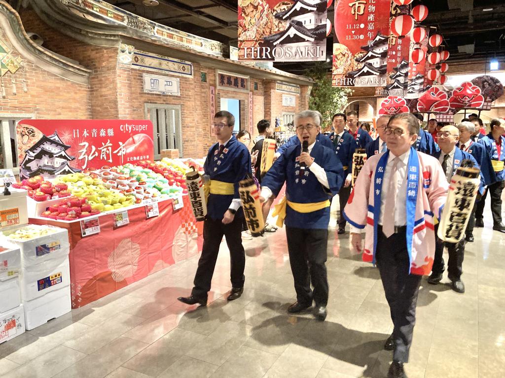 日本弘前市櫻田宏市長致詞指出,今年的天氣宜人,所以盛產的蘋果也特別香甜,歡迎大家可以到遠東百貨選擇最優質、新鮮的弘前蘋果。