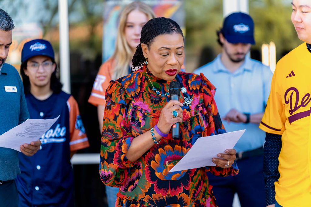 ▲大魯閣(1432)美國第三家棒壘球打擊中心-鳳凰城錢得勒店正式開幕,邀請錢德勒副市長Christine Ellis女士蒞臨剪綵並致詞。(圖/大魯閣提供)