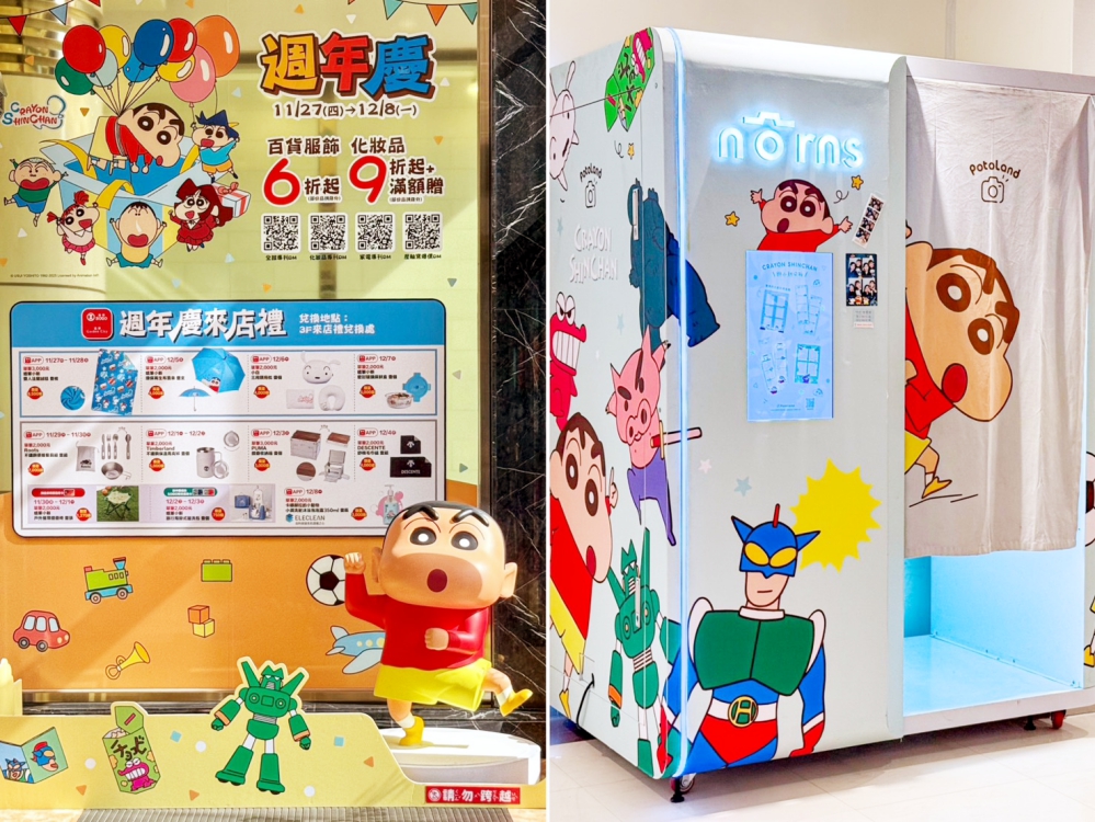 ▲新竹SOGO1F中央路大門口設置蠟筆小新迎賓打卡點,3F增設同款拍貼機,讓粉絲進館內就有滿滿蠟筆小新。(圖/新竹SOGO提供)