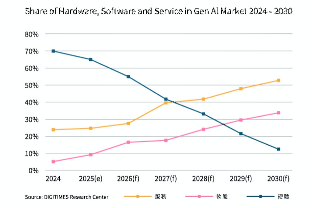 ▲DIGITIMES Research 預估,2026 - 2030 年生成式AI 將為全球經持續帶入成長動能。(圖/主辦單位提供)