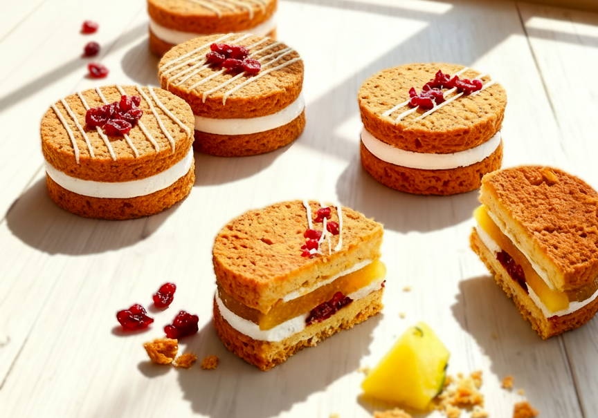 此外,這款夾心餅採用具挑戰性的「5層結構設計」,以鳳梨內餡為主體,並以特製香草杏仁酥餅為基調,再輔以雲朵般的棉花糖與酸甜蔓越莓醬,頂層更輕綴宛如島嶼紅色印記的洛神花乾,帶出優雅的酸香尾韻,打造豐富層次,在口感上達到「酥、鬆、綿、韌」的平衡,並在視覺上透過洛神花的深紅點綴提升美學層次。民眾可於3月12日至3月15日前往台北國際烘焙展維格餅家現場品鑑。