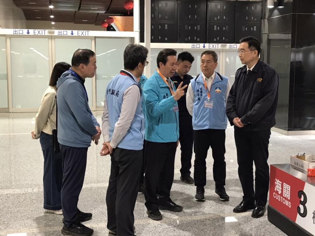 【大成報記者陳金/金門報導】金門縣縣長陳福海25日上午11時拜會大陸委員會主任委員邱垂正後,為了解水頭碼頭旅客通關與CIQS人力配置現況,旋即於26日上午率副縣長陳祥麟、觀光處處長許績鑫與港務處處長許嘉興等,前往金門港旅運大樓進行視察,並陸續拜會海關、動植檢、移民署金門服務站、國境隊與高雄港務警察總隊金門港中隊等中央駐金單位,除關心相關人員工作與生活環境之外,並針對日前拜會陸委會所提「小三通航班增班」、「提升金門地區CIQS人力配置」與「開拓多元旅遊客源」等實質性議題,務實地與國門第一線CIQS人員進行意見交換,盼爭取政策同時,也能兼顧承辦單位需求與現況,讓小三通整體服務品質再升級,擴大小三通旅遊人潮。