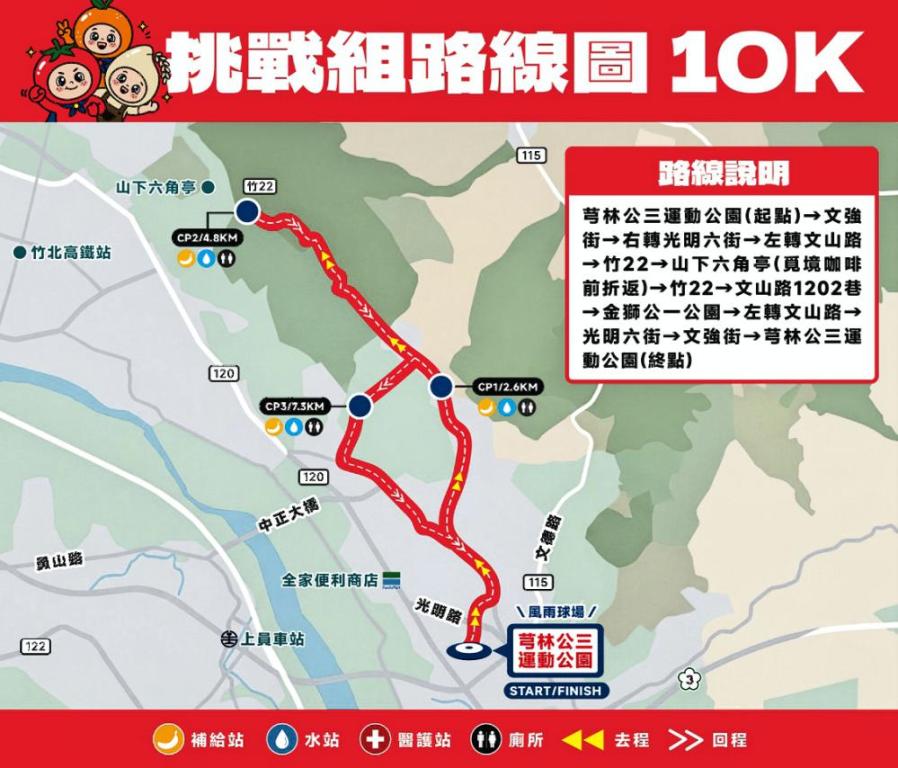芎林鄉公所指出,為打造芎林最FUN的親子路跑遊樂園,這次規劃有10公里挑戰組及5公里休閒組,兼顧挑戰性與參與樂趣,讓不同年齡層與程度的民眾都能輕鬆加入。除了路跑與跑酷體驗,活動當天舞台區也將安排藝文展演節目,包含有玉米雞劇團、劉阿昌與打幫你樂團、客家歌手陳瑋儒等,以及其他精彩表演輪番登場;現場還有特色市集及摸彩活動,讓民眾一次享受邊吃、邊玩、邊逛與抽好禮的多重樂趣。