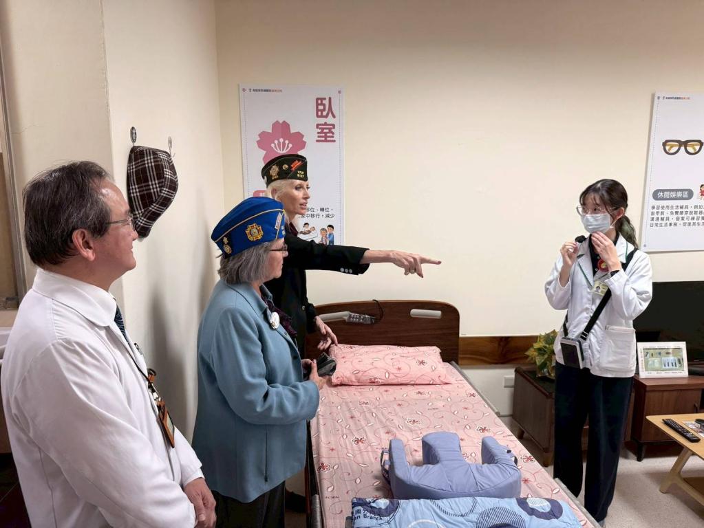 輔導會參事倪邦臣表示,為強化榮民醫療照護服務效能,深化美台退伍軍人醫養交流,本次美方來賓實際走訪臺南分院附設護理之家提供榮民住民長照照顧模式、急性後期照護(PAC)「仿家屋」實境模擬復能亮點等,交換意見並感印象深刻;深入瞭解園區推動榮民「綠色通道」醫療服務創新措施與執行成果,展現臺灣醫養合一照護新典範。