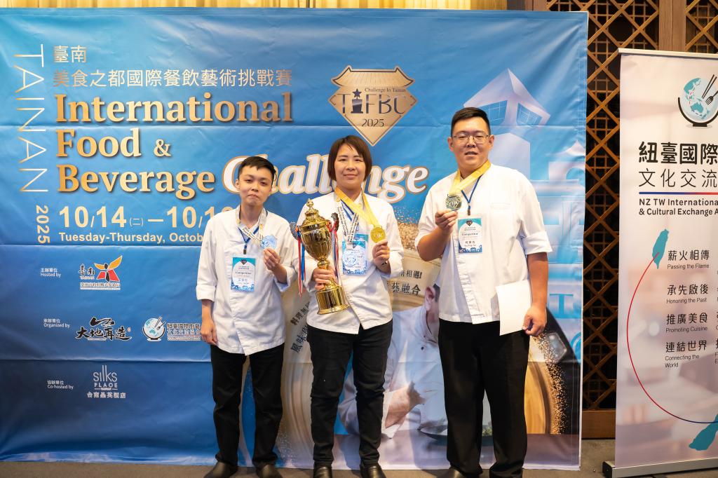 【大成報記者于郁金/臺南報導】以「不旬不食」,運用在地食材元素為特色禧榕軒大飯店,在2025「TIFBC-臺南美食之都國際餐飲藝術挑戰賽」中榮獲1特金、2金牌、2銀牌,充分發揮飯店餐食精神與特色,主廚們精湛廚藝與創意發想,將美食料理展現出如魔法般地耀動,大展廚藝,成績斐然。