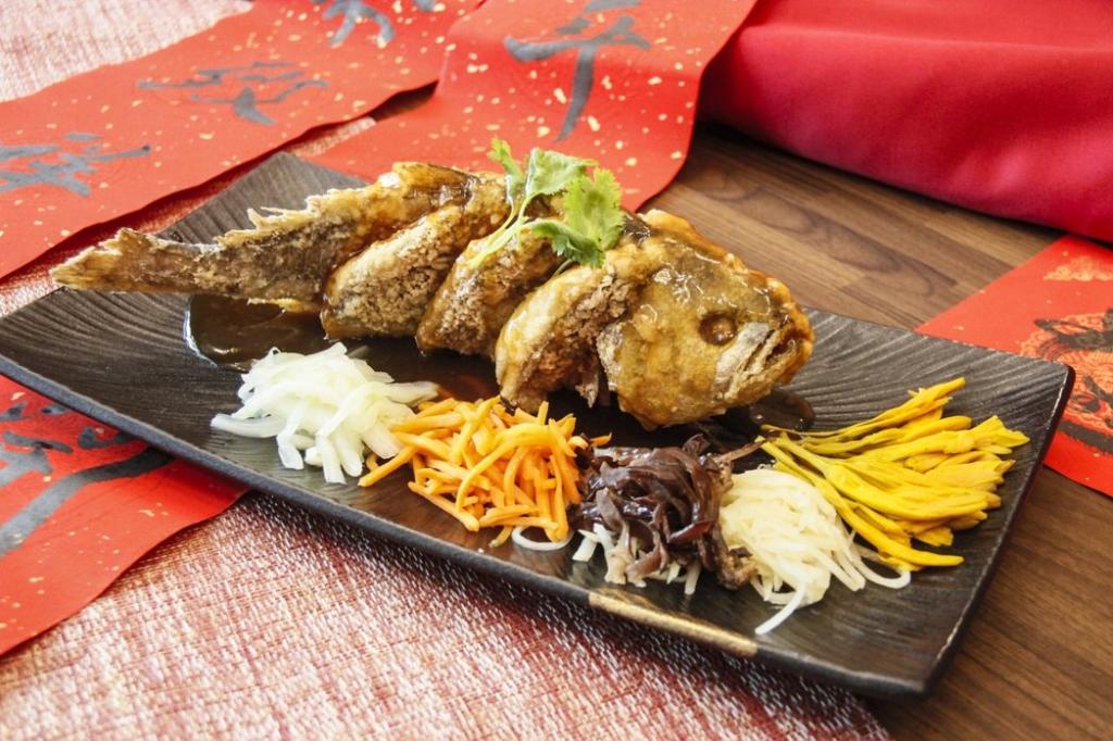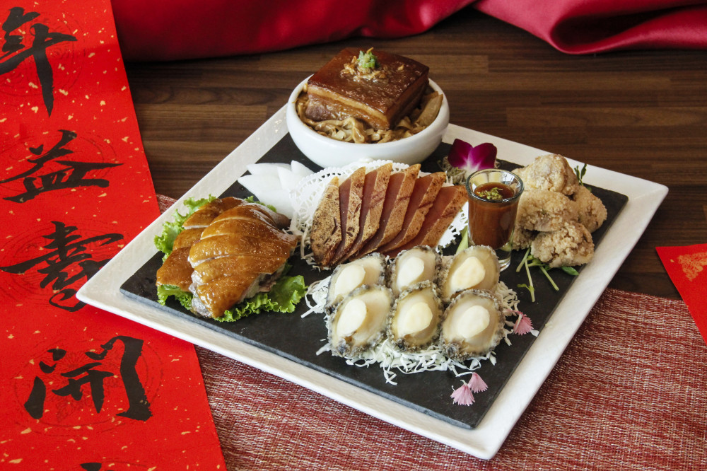 此次年菜由行政主廚高文強率領副行政主廚陳錫熙、中餐主廚彭玉麟聯手打造,3位主廚累積近半世紀廚藝底蘊,重現臺南手路菜精神;6人份整套年菜每套8,999元,含7道料理:「迎春五福金滿堂」集烏魚子、九孔等五味,象徵五福臨門;「台式一品魚翅羹」慢火熬煮,酸甜古早味濃郁;「五柳枝海上鮮」以道地手法烹製黃魚,鮮嫩入味;另「和風海大蝦米糕」、「古早味南靖雞」、「花菇蔬蠔皇鮮鮑」、「潮式佛跳牆」,道道精緻。