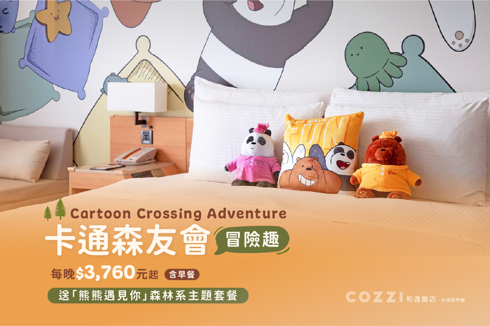 此外,深受親子旅客喜愛「卡通森友會 冒險趣」一泊二食住房專案廣獲好評,延長銷售至2026年3月31日,雙人入住3,760元起,並贈送「熊熊愛吃in台南 森林系套餐」,內含熊熊主題鹹食及甜點,搭配主題飲品,打造不同於早餐形式午後輕食餐點。