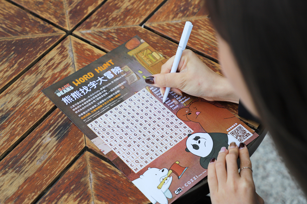 即日起至6月30日,特別推出「熊熊找字大冒險」闖關活動,提供入住旅客免費體驗;活動以英文找字遊戲為主軸,邀請親子在字母中找出《熊熊遇見你》3位主角名字,同時尋找隱藏之中的臺南在地特色關鍵字,增添親子間互動樂趣。