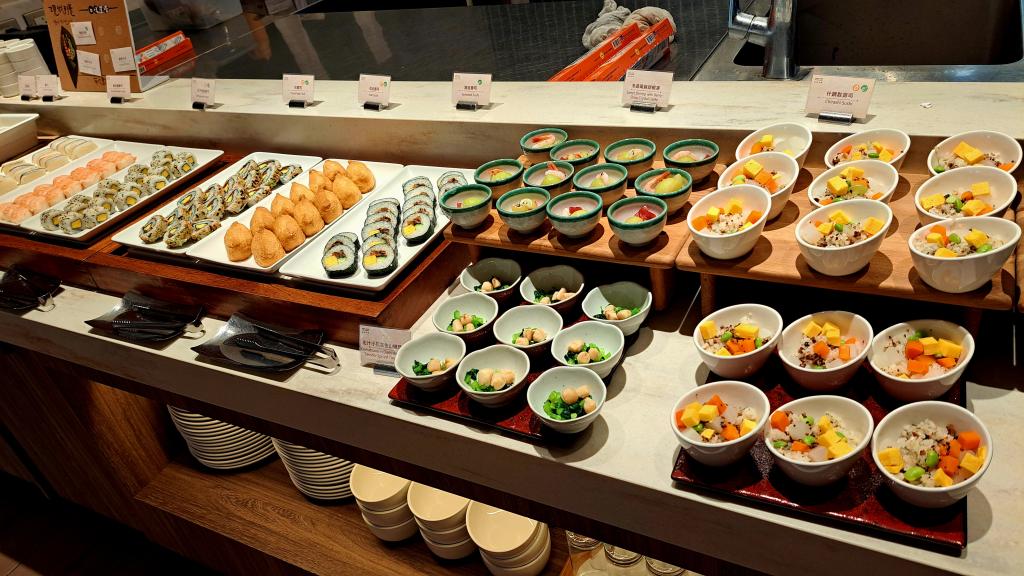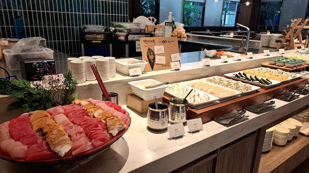 特別的是,融合在地食材虱目魚肉燥、虱目魚麵包、現沖牛肉湯、虱目魚希臘沙拉、府城海味鮮湯飯等,平日午餐就擁有豐富海鮮吧、現切火腿、生魚片、握壽司、現做手捲,讓民眾大快朵頤。