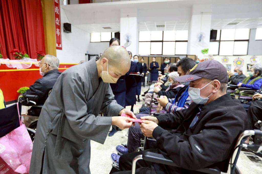 在祝福聲中,慈濟精舍師父親手逐一發放象徵祝福與智慧「福慧紅包」,將關懷與溫暖傳遞到每一位長輩手中;適逢慈濟明年將屆滿60周年,今年福慧紅包特別印有「60」字樣,讓長輩們在領取時倍感驚喜,也感受到一甲子喜悅與祝福。