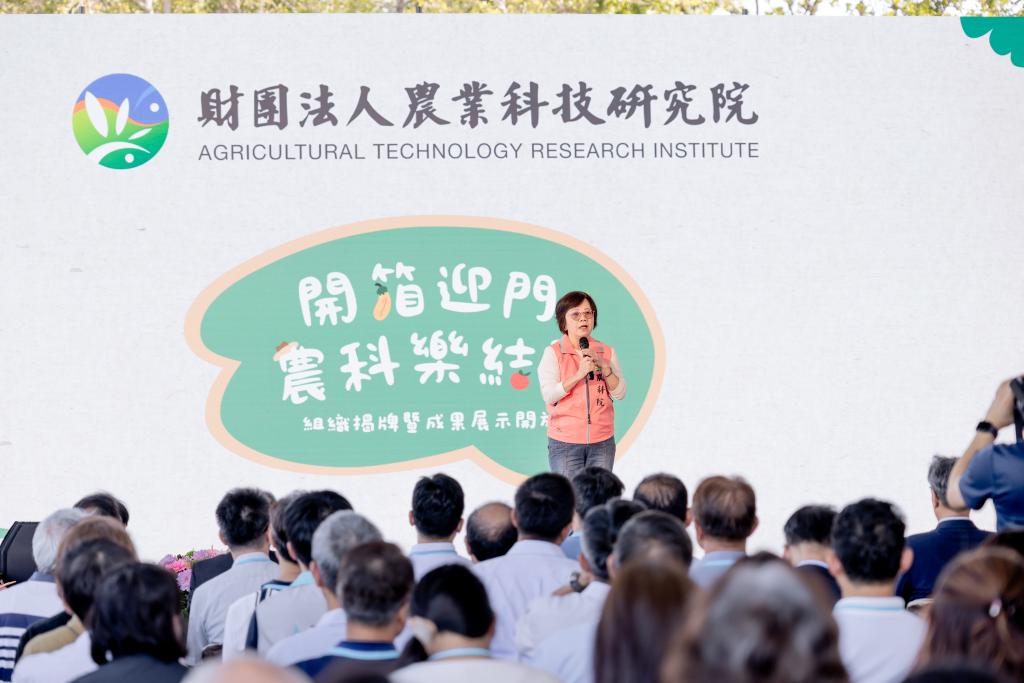 ▲財團法人農業科技研究院舉辦創院以來首次開放日「開箱迎門農科樂結盟」活動,農科院代理院長李紅曦致詞。(圖/農業科技研究院提供)