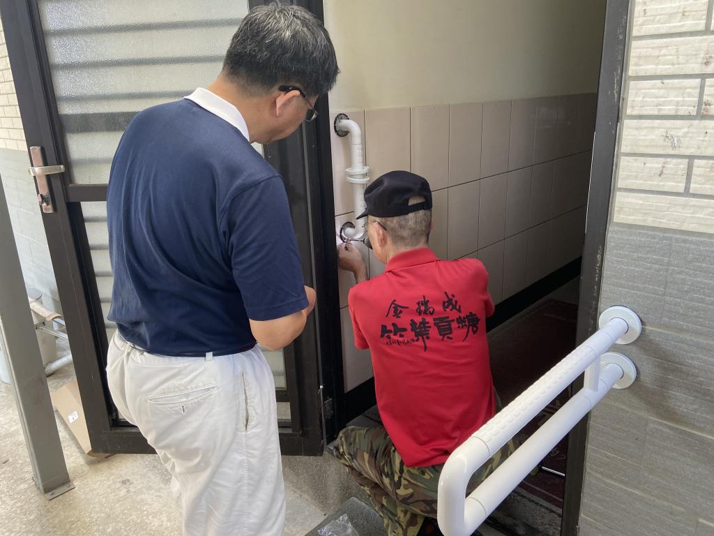 【大成報記者陳金/金門報導】金門榮民服務處副處長彭致和近日率責任區輔導員汪成飛,聯結佛教慈濟基金會金門分會洪松柏分會長及多位志工,前往轄區長者金沙-吳伯伯及金寧-董伯伯家中,針對「安美專案」申請個案,進行居家生活設施改善服務;此次主要安裝扶手等安全輔具,現場由慈濟志工團隊協助進行測量、訂製及安裝作業,相當注重每一個施工環節,並依長者實際需求量身打造,兼顧美觀與實用,讓長者能親身體驗居家環境改善後便利與安全。