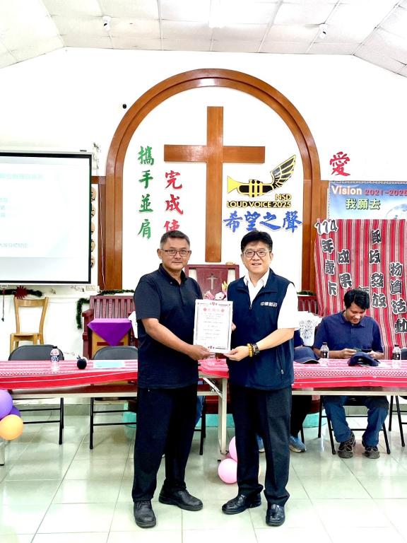 義興部落文化健康站黃志慧牧師與在地長者們熱情迎接。現場除捐贈物資外,雙方也就照護弱勢與獨居長者的經驗進行交流,並探討未來社福資源的整合與合作可能性。捐贈儀式於當地教會大廳舉行,義興文建站特別頒發感謝狀,感謝郵局長期關懷部落長輩,積極投入公益行動。