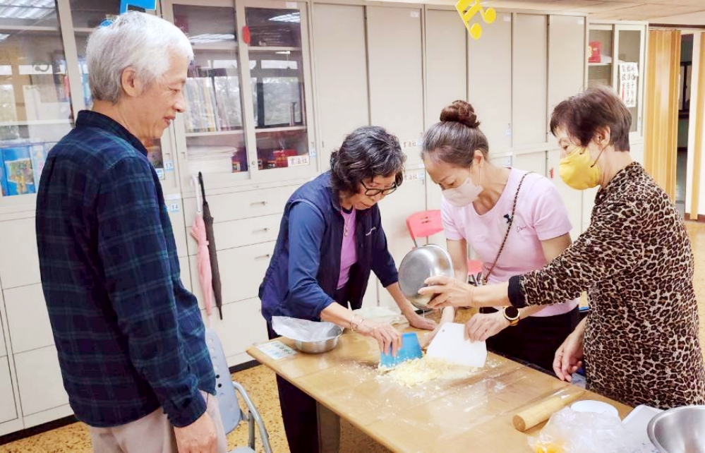 ▲八德榮家「第五期烘焙教室」開幕,住民長輩巧手悉心製作鹹派,認真完成每一步驟。(圖/八德榮家提供)
