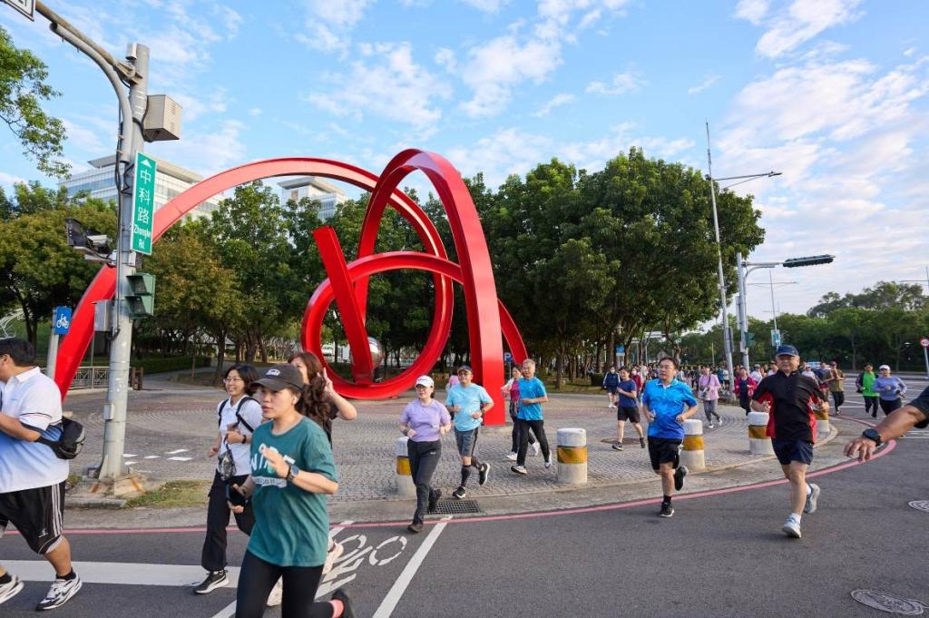 ▲2025「中科盃路跑活動—中科Happy Run」熱鬧登場,路跑民眾行經中科園區公共裝置藝術「流動.連結」。(圖/中科管理局提供)