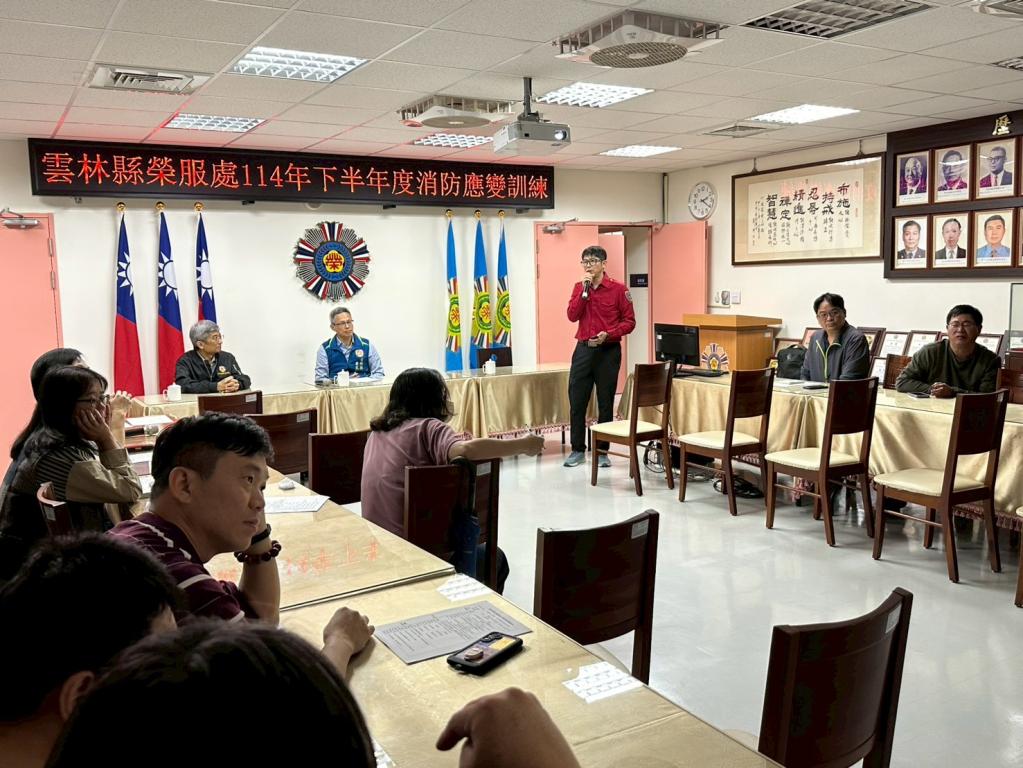 【大成報/雲林報導】雲林縣榮民服務處為全面提升同仁防災應變能力,日前邀請雲林縣消防局斗六分隊小隊長林瑞祥到場授課,進行一場結合理論講解與實地操作消防安全演練;課程內容豐富,涵蓋防火常識、初期滅火技巧到實際設備操作。