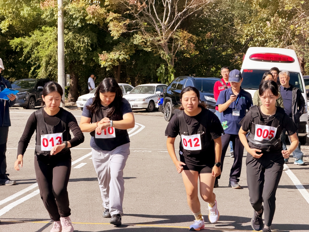 ▲林保署新竹分署115年度森林護管員甄試舉行為期2天術科及筆試測驗,今日術科測驗女性考生進行負重跑走測驗。(圖/林保署新竹分署提供)