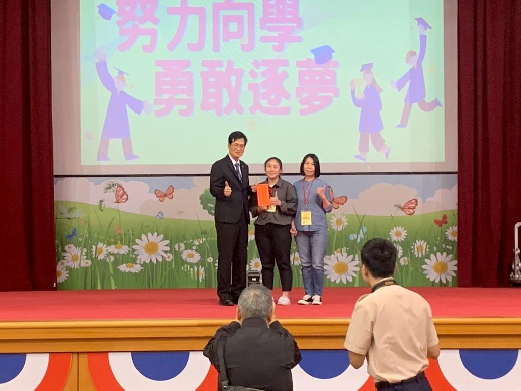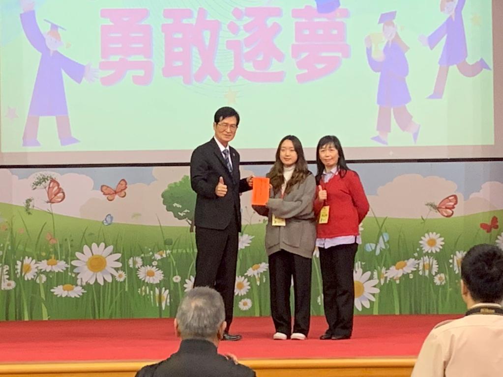 邱處長勉勵受獎同學勇敢追夢,未來以自身力量回饋社會,讓榮民大愛得以薪火相傳,為國家創造更美好未來。