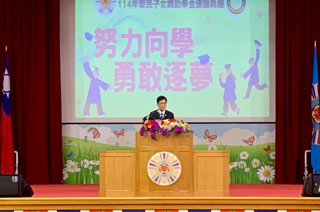 嚴主任委員典禮中勉勵所有受獎學子,在接受資助同時,能感受社會對清寒榮民子弟支持與期待,並將這份關懷化作前進力量,持續努力向學;他期盼青年學子未來能學成返鄉或投入社會服務,延續榮民前輩無私奉獻、回饋國家精神。