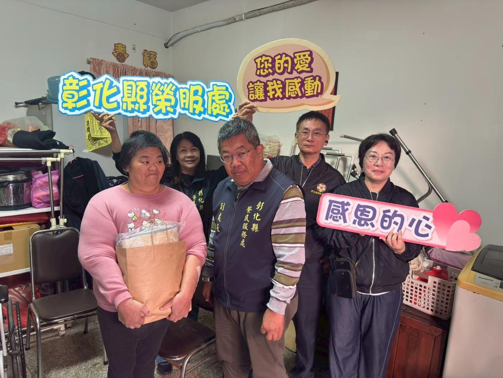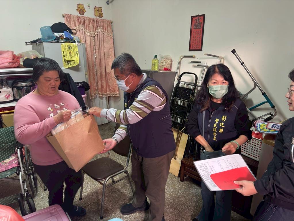 【大成報/彰化報導】為關懷弱勢傷病榮眷,彰化縣榮服處近日由副處長蘇一中率責任區輔導員、急難救助承辦人及服務區組長一行,共同前往遺眷鍾女士家中關懷其生活及身體狀況,致贈愛心保暖物資及急難救助金,送上及時暖暖關懷及服務。