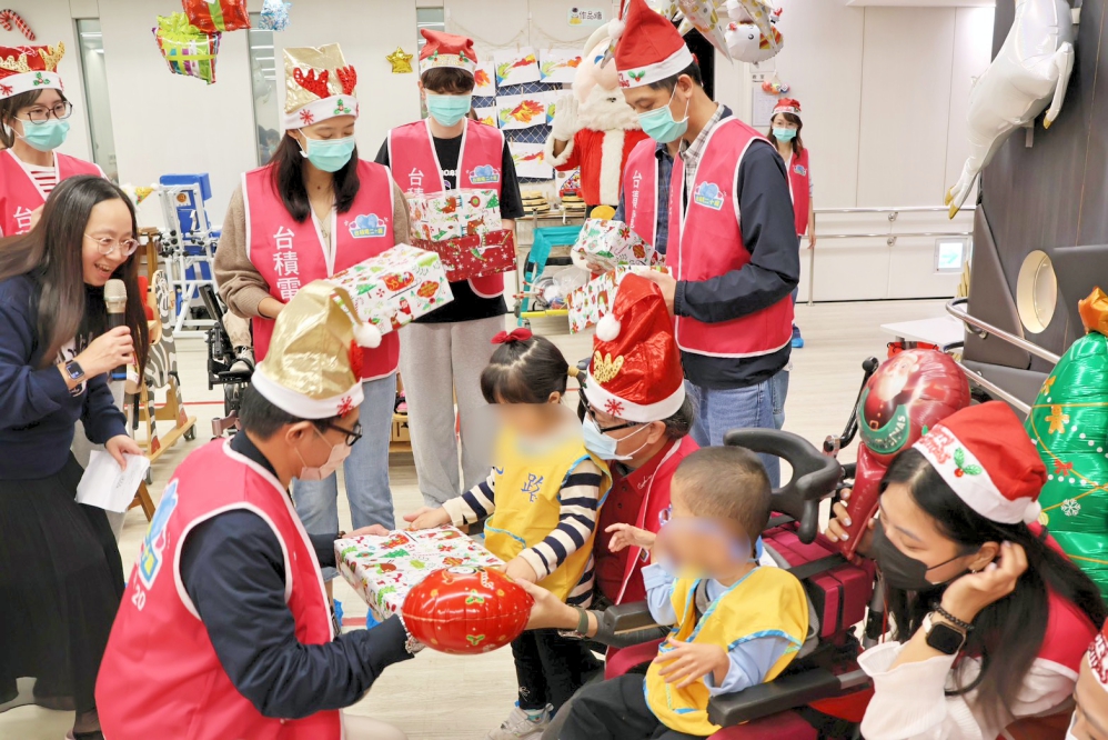 ▲台積晶圓12B/20廠呂禎祥廠長發送聖誕禮物給早療孩子。(圖/心路基金會提供)