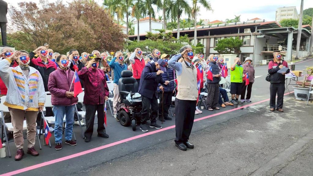 典禮於上午準時開始,伴隨雄壯嘹亮〈國歌〉與〈國旗歌〉聲,國旗冉冉升起,現場全體人員行注目禮,神情莊重;隨後齊唱〈國旗歌〉,象徵對國家長久以來認同與情感連結,凝聚榮家世代共同歷史記憶與榮民精神;接續演唱〈國家〉、〈梅花〉、〈中華民國頌〉等歌曲,熟悉旋律喚起長輩們對歲月與時代深層共鳴,場面溫馨而感人。