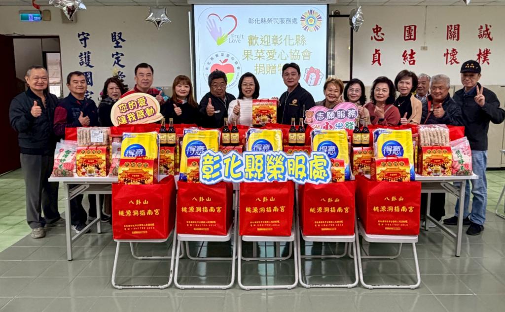【大成報/彰化報導】為關懷轄區榮民及眷屬生活所需,彰化縣榮民服務處近日媒合彰化縣果菜愛心協會愛心資源,由徐千惠理事長率同協會成員,並結合果菜市場合作社主席陳建宏、總幹事施佩瓔共同響應,捐贈民生物資一批,透過榮服處轉贈分送予轄內有需要榮民眷屬,將社會溫暖與關懷送進家庭。