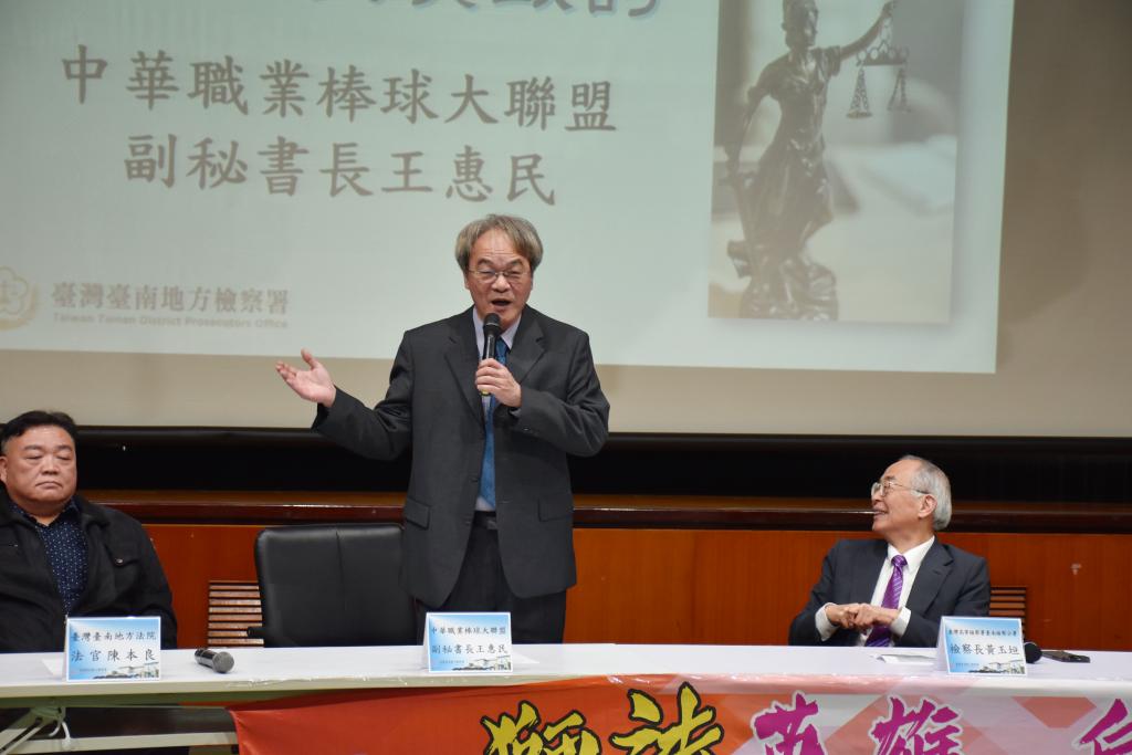 臺灣臺南地方法院陳本良法官、中華職棒大聯盟王惠民副秘書長與統一獅隊蘇泰安總經理則均提醒,所有球員要注意防範新興「線上賭博遊戲模式」,並提醒球員若涉及不法,除可能面臨嚴峻司法調查,也會引起社會各界關注,甚至導致球員、球團及中華職棒聯盟形象均受到傷害,因此期盼與感謝本署檢察官精心準備法治教育課程,讓正確法律觀念能深植到每位職棒球員及職員身上,以維護我國職業棒球賽事能在公平、公正環境下進行。